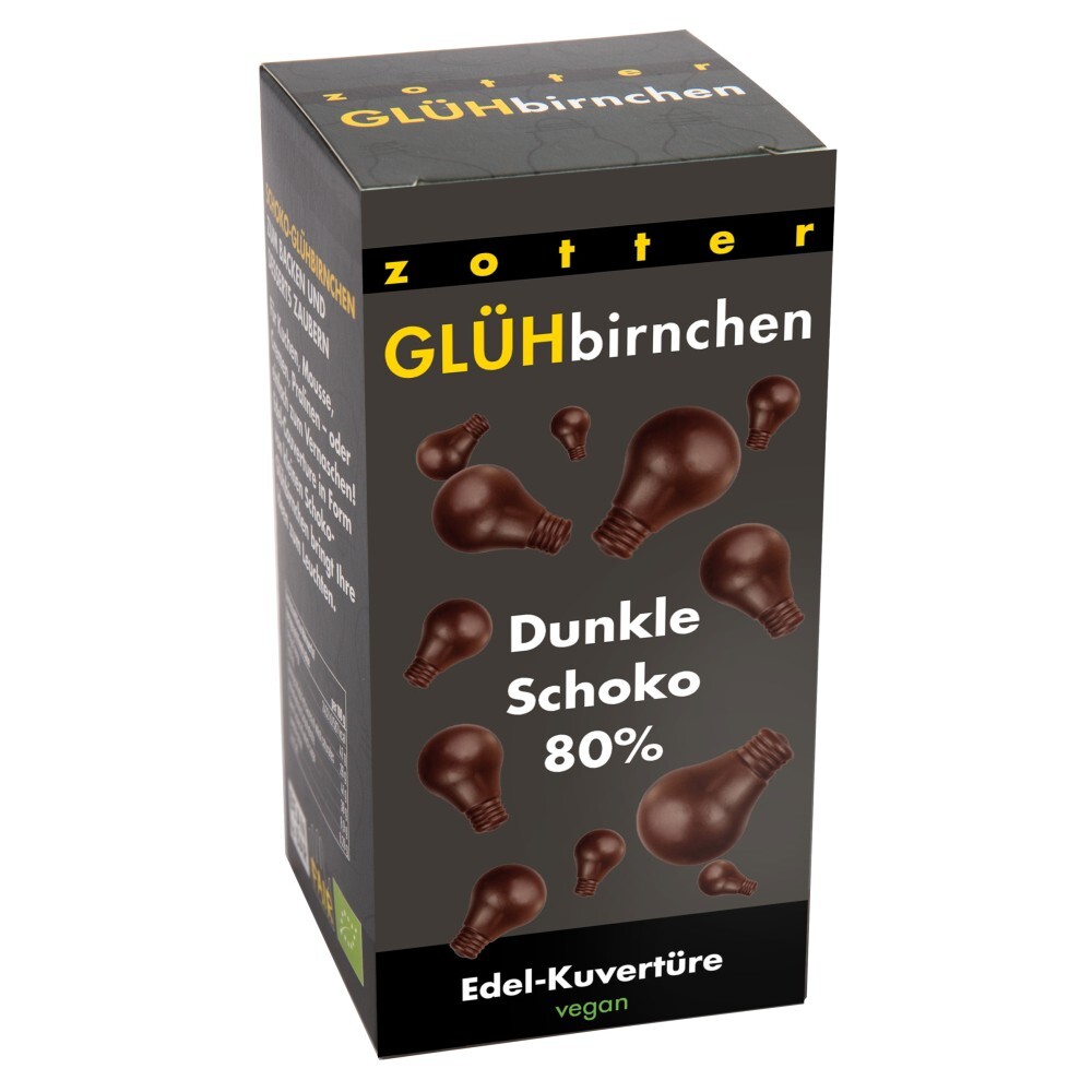 Brilantní bio hořká čokoláda s vysokým 80% obsahem kakaa zaručuje intenzivní čokoládovou chuť s velmi jemnou sladkostí surového třtinového cukru. Je vytvarovaná do spousty malých žároviček, respektive jejich polovin. Nemusíte tedy pracovat s čokoládovou "cihlou", ale odsypete si vždy jen tolik couverture čokolády, kolik právě potřebujete. Díky ploché polovině vám "čokoládová světýlka" ze stolu neutečou. Obal je z jedné strany v němčině, z druhé v angličtině.
