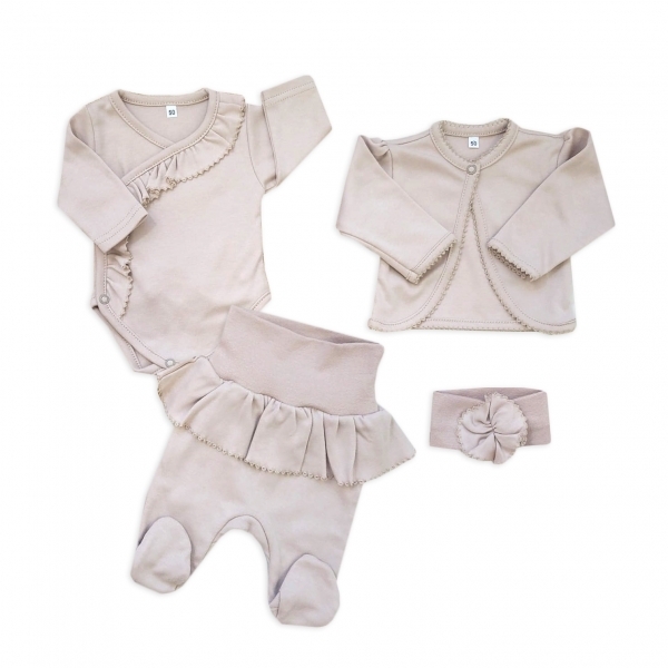 Tato výbavička je dokonalou sadou pro první dny života vašeho miminka. Ideální nejen na odchod z nemocnice, ale i jako dárek. Kombinuje funkčnost s elegantním vzhledem.