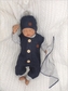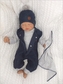 Z&Z 3-dílná soupravička body, dupačky s knoflíčky a šátek, šedá/jeans, vel. 68; 68 (3-6m)