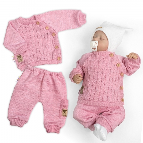 Rostoucí pletený svetřík a kalhoty s kapsou Hand Made 2D, Nature, růžová; 56/62 (0-3m)