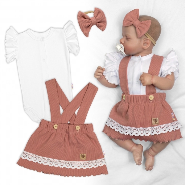 3D sada LADY, bavlna, body kr. rukáv, suknička s láclem, čelenka, starorůžová/bílá, 74; 74 (6-9m)