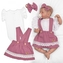 Obsahuje celorozpínací body s krátkým rukávem (volánkem), suknička s láclem z žebrovaného bavlněného materiálu + čelenka.