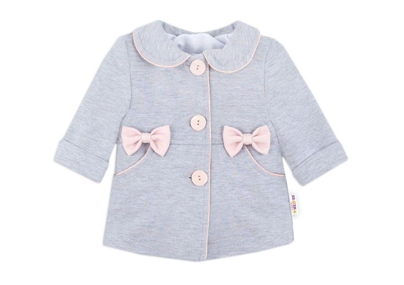 Baby Nellys Dětský bavlněný kabátek s mašličkami, šedý, vel. 92; 92 (18-24m)