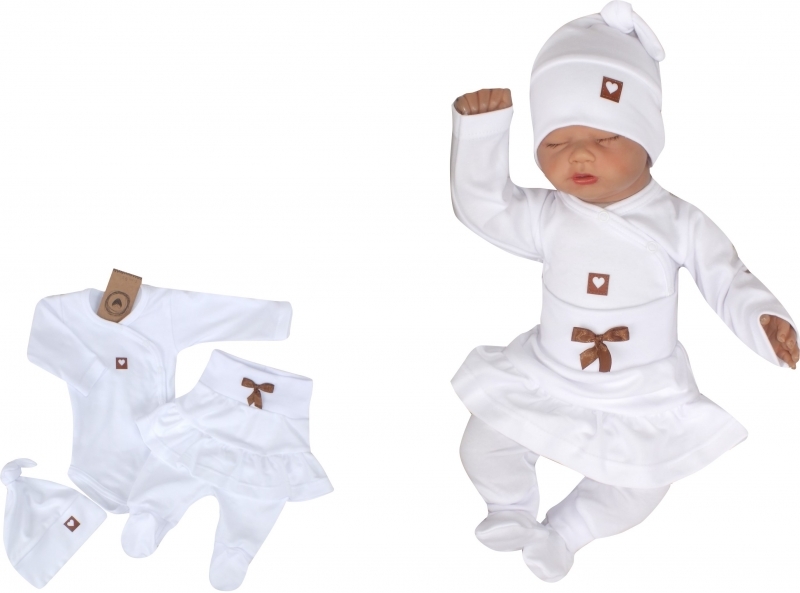 Z&Z 3-dílná soupravička body, polodupačky s volánkem a čepička Mašlička - bílá; 50 (0-1m)