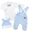 Bavlněná souprava Gentleman 3D, body, polodupačky s láclem + čepička, modrá/bílá, vel. 68; 68 (3-6m)