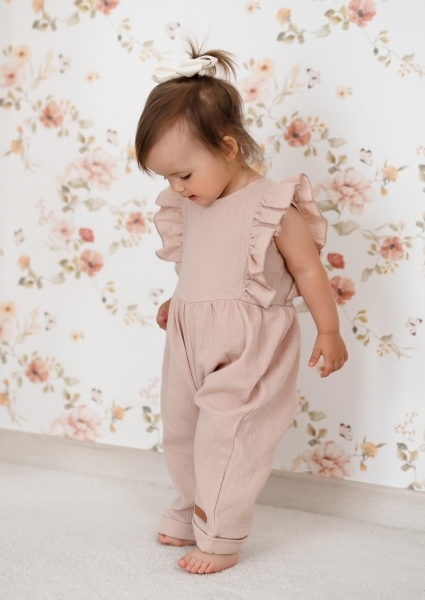 Letní mušelínový overálek pro holčičky s volánkem Star - béžový, vel. 92; 92 (18-24m)