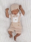Mušelínové kraťasy s láclem, bodýčko, čepička, motýlek 4D sada, Z&Z, písková/bílá, vel. 74; 74 (6-9m)