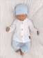 Elegantní mušelínová 3D sada - košile, kalhoty + čepice, 3D sada, bílá/modrá, vel. 74; 74 (6-9m)