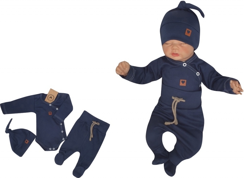 Z&Z 3-dílná soupravička body, polodupačky s provázkem a čepička - granátová; 50 (0-1m)