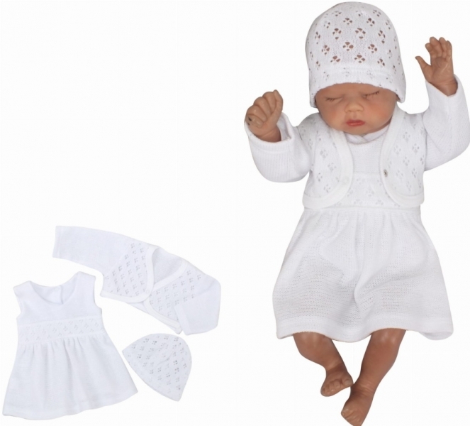 Z&Z 3-dílná pletená sada šatičky, bolérko a čepička - bílá, vel. 68; 68 (3-6m)