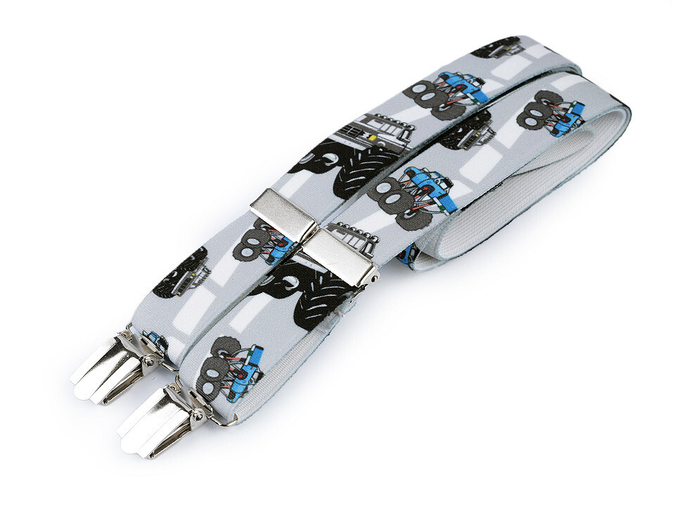 Dětské šle smajlík, postavičky, zvířátka, auta - 1 ks - 23 šedá nejsvětlejší náklaďák