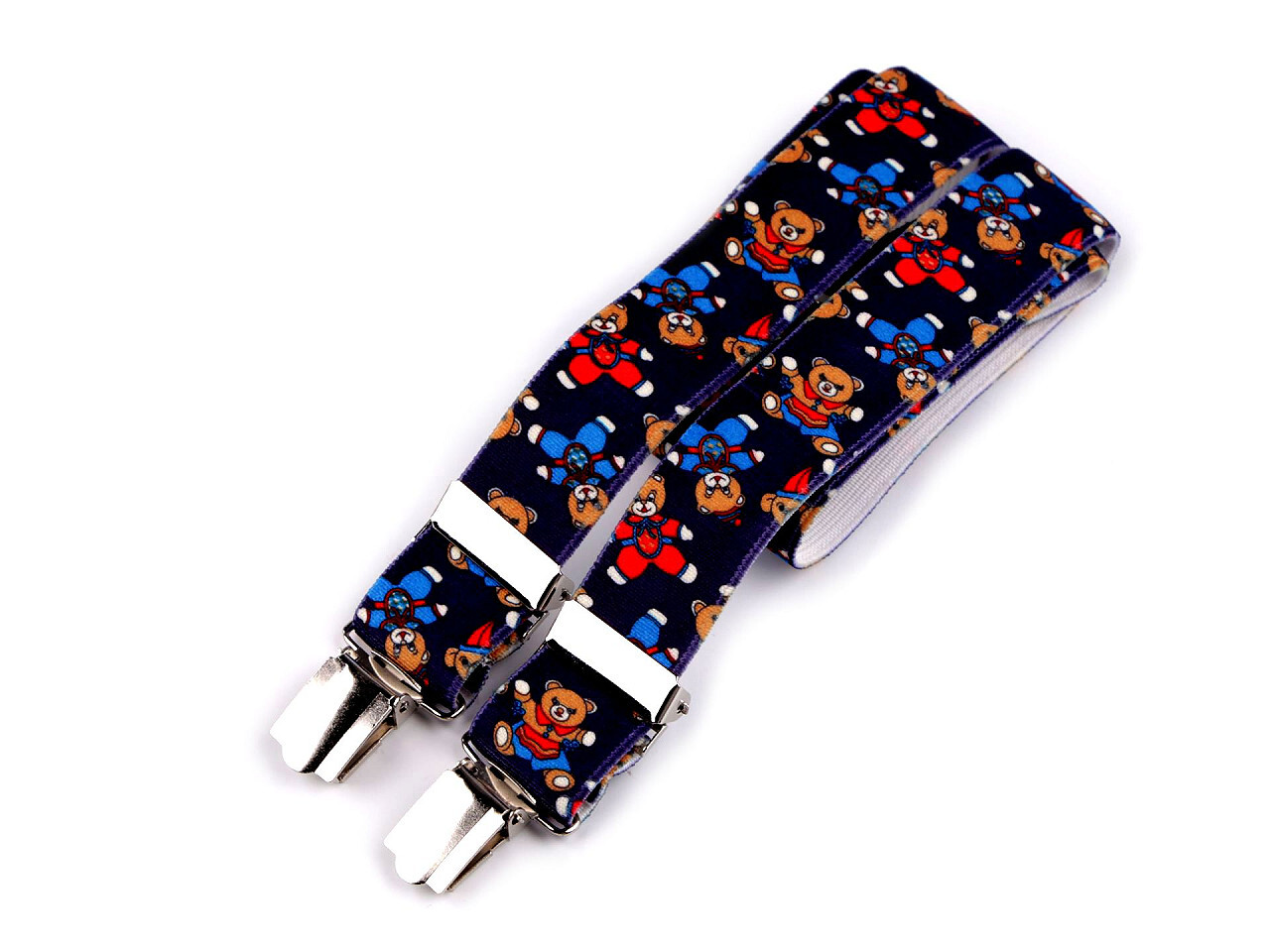 Dětské šle srdce, fotbal, auto, hvězda, formule, smajlík, motýl - 1 ks - 37 modrá tmavá medvědi
