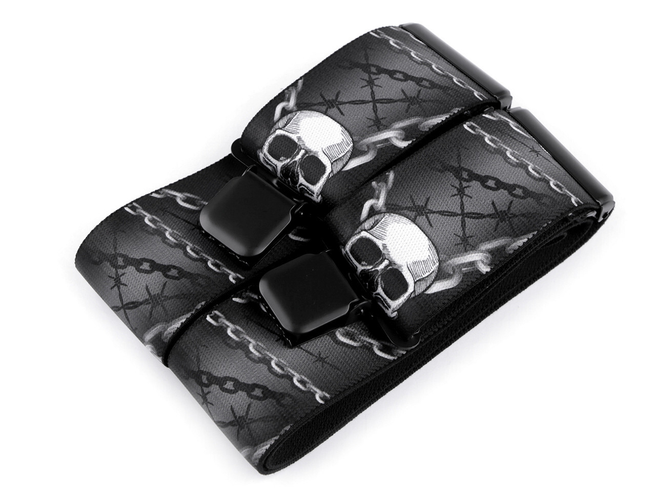 Kšandy s unikátním potiskem lebek a řetězů jsou ideálním doplňkem pro všechny, kdo chtějí svůj outfit doplnit o osobitý prvek plný charakteru. Nejenže přidají na stylu, ale zároveň jsou praktické a pohodlné na nošení.