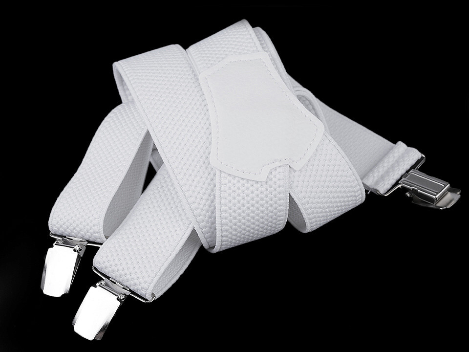 Tyto šle české výroby v bílé barvě mají šířku 3,5 cm a délku 120 cm, díky čemuž jsou snadno nastavitelné a pohodlné na nošení. Kovové úchytky zaručují pevné přichycení ke kalhotám a vysokou odolnost při každodenním nošení. Šle představují nejen praktický, ale i módní doplněk, který skvěle doplní váš outfit, ať už jde o běžný den nebo speciální události.