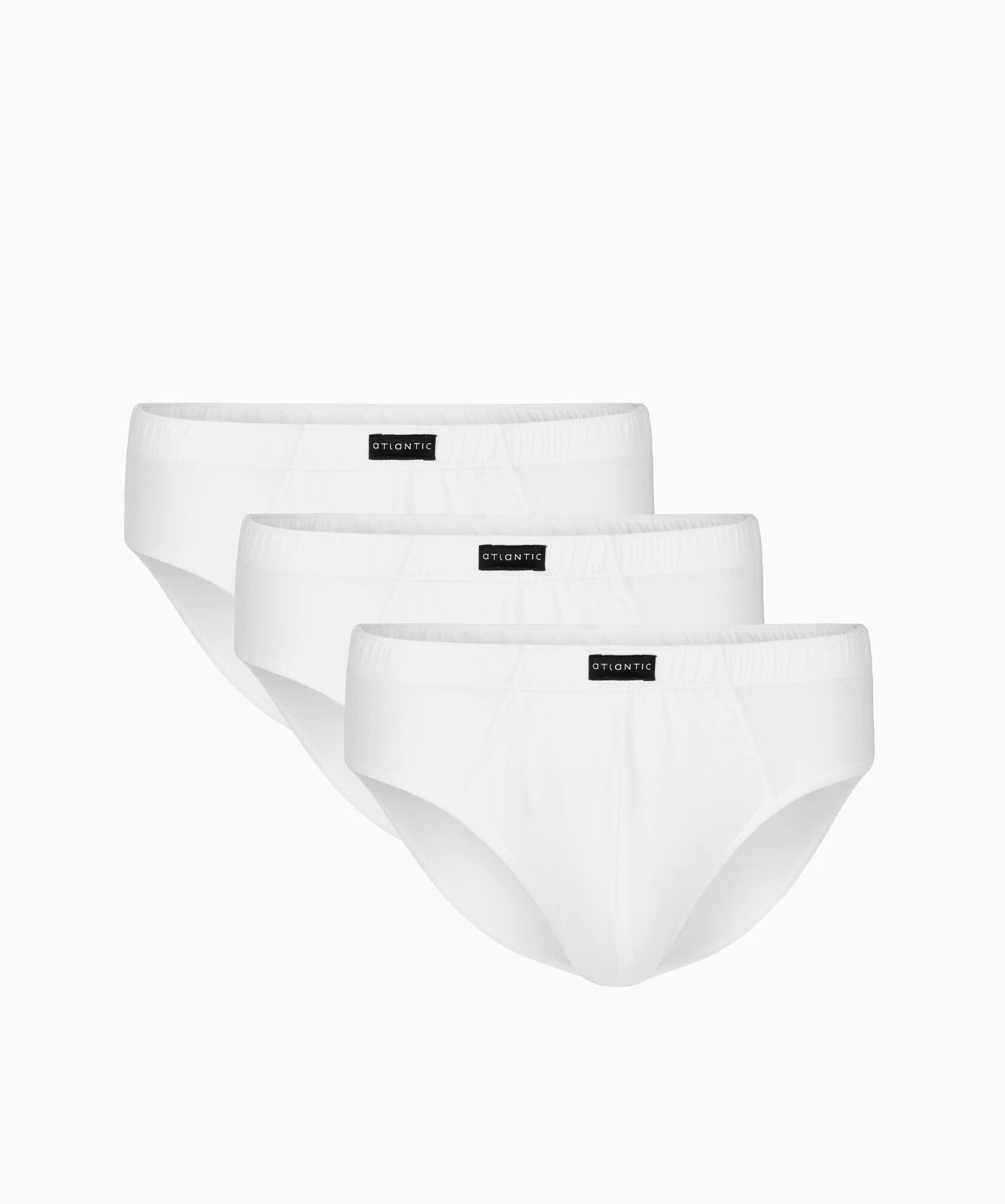 Klasyczne slipy męskie- z wysokiej jakości bawełny- w pasie guma w tunelu, z naszywką z logo atlantic- pakowane w pudełko po trzy sztuki