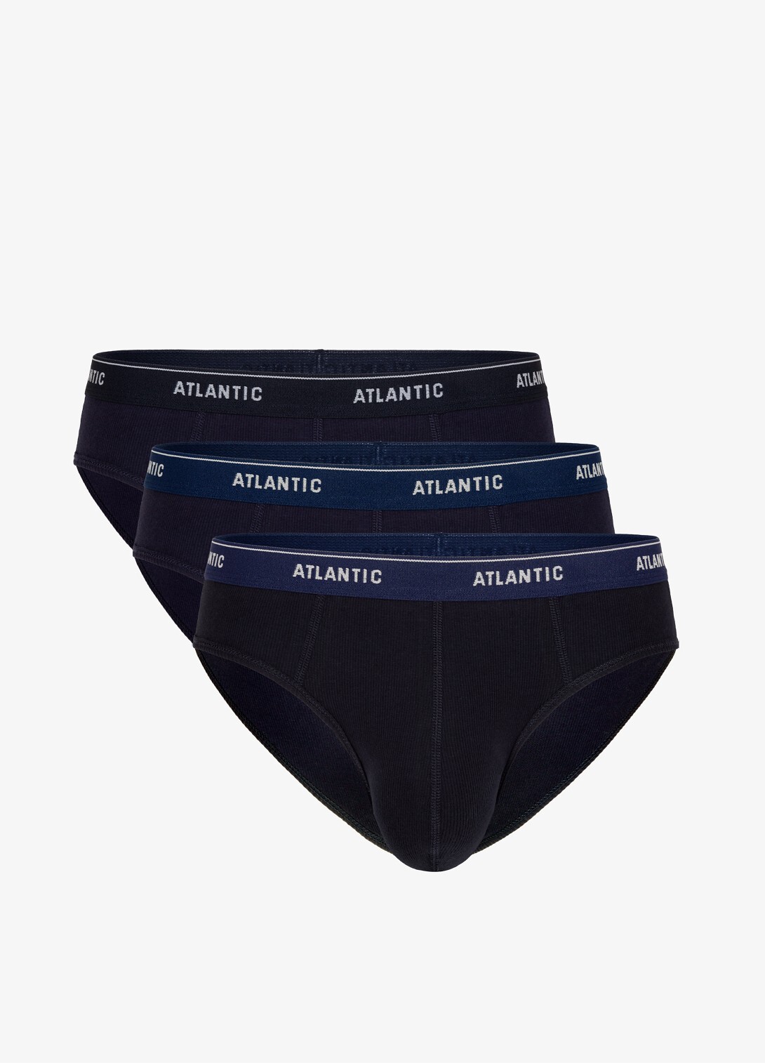 Bawełniane slipy męskie- miękka, prążkowana dzianina- sportowy krój- w pasie płaska guma z logo ATLANTIC- idealnie dopasowane do ciała- pakowane w pudełko po 3 sztuki číst celé