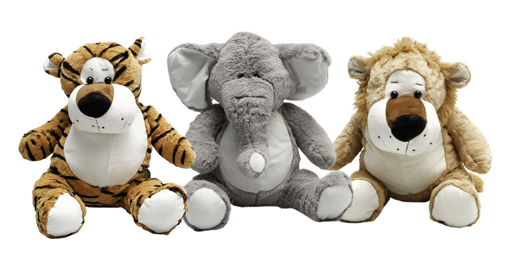 Plyšová zvířátka - různé druhy - lev, tygr, slon, gepard.Velikost 53 cm. Vyrobeno z kvalitní plyše. číst celé
