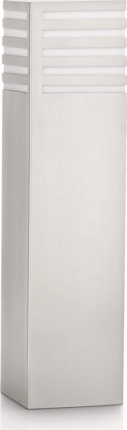 Sloupkové zahradní svítidlo kolekce Veranda produktové řady Philips myGarden v efektním moderním stylu pro příjemné nasvícení větších zahrad, přístupových a příjezdových cest domu, garáže nebo terasy. Má silné, ale neoslňující teplé bílé světlo, které je rozprostřeno dolů a do stran skrz elegantní mřížku stínidla. Uvnitř skrývá patici E27 o maximálním příkonu zdroje 1 x 20 W. Úsporná zářivka energetické třídy A je součástí balení. Lze jí nahradit žárovkou en. třídy A+ až E. Svítidlo je vyrobeno z materiálů prvotřídní kvality a tím je zaručena jeho dlouhá žívotnost až 10 let. Jedná se o nerezovou ocel s matnou povrchovou úpravou v kombinaci s odolným bílým plastem. Krytí IP44 značí jeho voděodolnost. Sloupek je vysoký 40 cm. Venkovní svítidla V dnešní době je venkovní zahradní osvětlení nedílnou součástí každého domu a zahrady. V nabídce jsou jak nástěnná nebo stropní a závěsná svítidla, tak sloupková, stojací či zemní na klasické nebo úsporné LED zdroje. Samozřejmostí je i kvalitapoužitých materiálů tak, aby zaručovala dlouhou životnost svítidel a odolnost proti vnějším vlivům počasí. Kolekce Philips myGarden Svítidla řady myGarden mají nadčasový moderní design a jsou určena speciálně provenkovní použití. Navržena a vyrobena jsou s ohledem na úsporu energie za použití vysoce kvalitních materiálů, aby byla zajištěna jejich dlouhá životnost a vysoká odolnost. Pro jejich výrobu se používá nerezová ocel nebo odlévaný hliník, vysoce kvalitní plast nebo sklo. Svítidla jsou odolná proti vodě podle standardu IP a jejich vnitřní součásti rovněž vynikají svou odolností. Jejich instalace je nenáročná a bezproblémová. Krytí IP44 Venkovní svítidla jsou vyrobena speciálně pro vlhké venkovní prostředí s odolností proti vlivům počasí a jsou testována na voděodolnost. Označení krytí stupněm IP vyjadřuje dva údaje. Prvním je stupeň ochrany proti prachu a druhým proti vodě. Svítidla s krytím IP44 jsou chráněna proti vniknutí cizích pevných částic o průměru nad 1 mm a protistříkající vodě.
