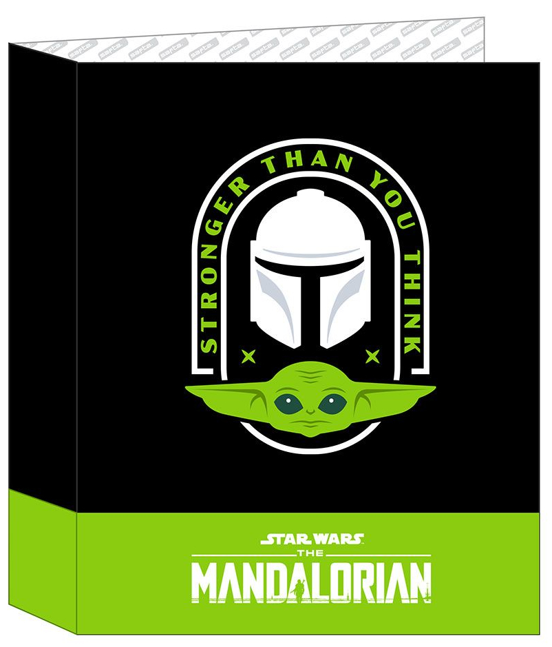 Kroužkový pořadač vyvedený v motivu seriálu The Mandalorian.