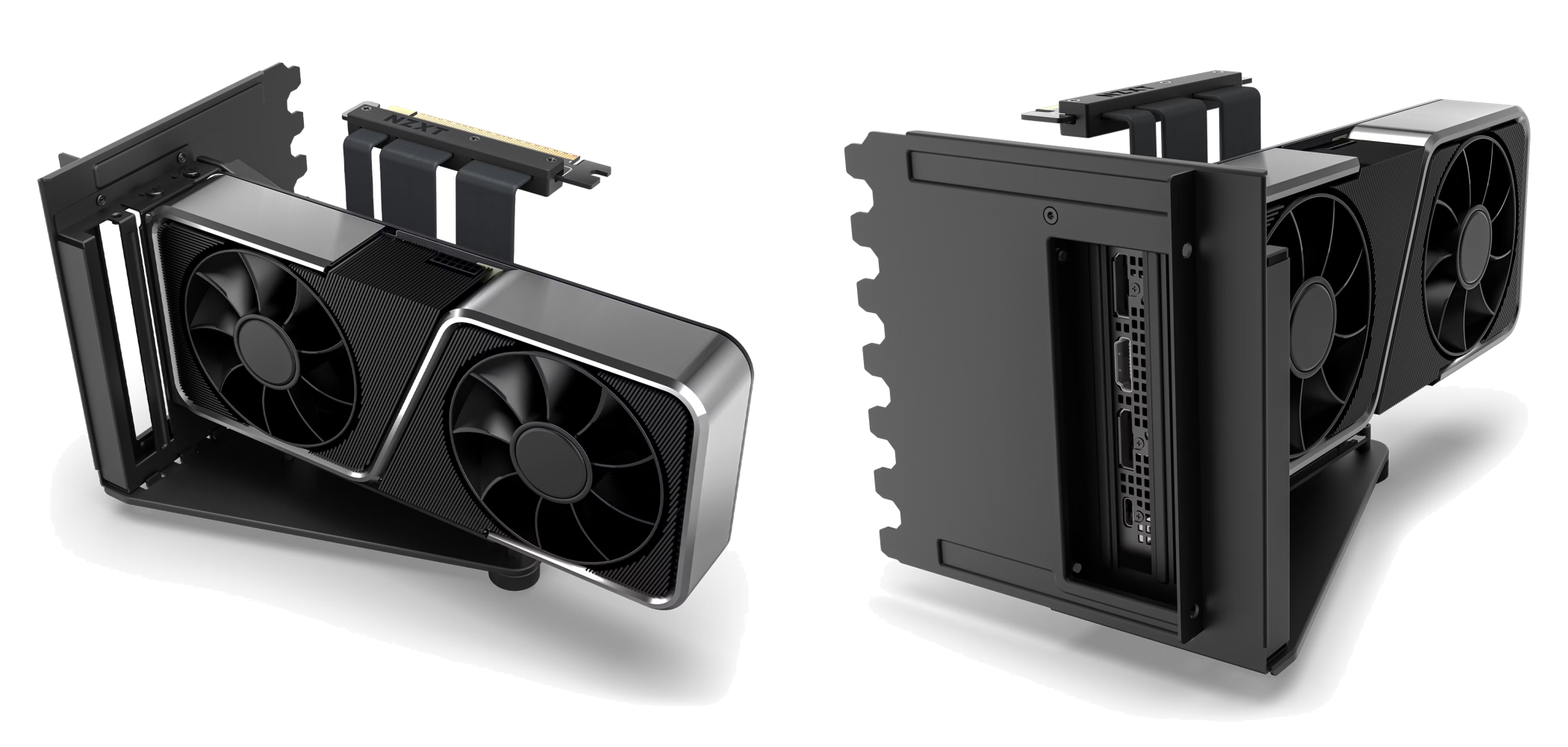 Robustní ocelový držák umožňuje vertikální instalaci grafické karty a zabraňuje prohýbání. 175mm PCIe 4.0 Riser kabel je flexibilní, zpětně kompatibilní a podporuje vysokorychlostní přenos dat. Držák je kompatibilní se skříněmi NZXT H5, H7 a H9.
