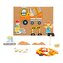 Hra obsahuje korkovou desku, kladívko, připínáčky a barevné dřevěné tvary různých dopravních prvků, jako jsou například stavař, míchačka nebo jeřáb. Děti tak mají prostor tvořit podle své fantazie nebo si mohou pomoci přiloženými obrázkovými předlohami. Výhodou je praktické balení v boxu, které zabraňuje ztrátě dílků a usnadňuje úklid po hraní.