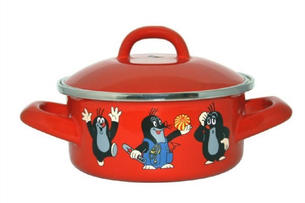 Hrnec s poklicí nízký Krtek smalt červený 19x14x6cm