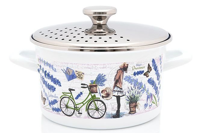 Smaltovaný hrnec PROVANCE s částěčně děrovanou nerezovou poklicí pro snadný odvod páry. Hrnec je vhodný do myčky nádobí. Lze jej použít na všechny typy varných ploch, včetně indukce. Objem 3,5 l. Materiál - smalt, nerez. Rozměry - výška (bez pokličky) 12,4 cm, výška (s pokličkou) 18 cm, průměr...
