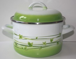 Smaltovaný hrnec s poklicí, motiv lístků, objem 6,75 l. Je vhodný na všechny typy varných ploch, včetně indukce. Lze jej použít do myčky nádobí. Rozměry - průměr 24 cm, výška 15,5 cm.