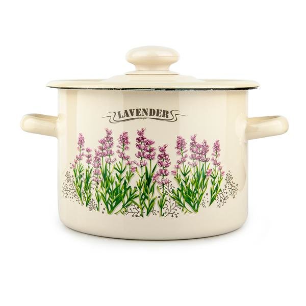 Smaltovaný hrnec s poklicí o objemu 4,5 litru je nejen funkčním nástrojem pro přípravu vašich oblíbených pokrmů, ale také krásným dekorativním prvkem s jemným levandulovým motivem, který provoní a zútulní každý domov či chalupu.