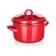 Smaltovaný hrnec MILTON 3.4 litru, rozměry: průměr 20 cm, výška (bez poklice) 12 cm, síla stěny 0.7 mm, poklice i hrnec s červenou smaltovanou glazurou, černým dnem na vnější straně, s krémovou barvou na vnitřní straně.