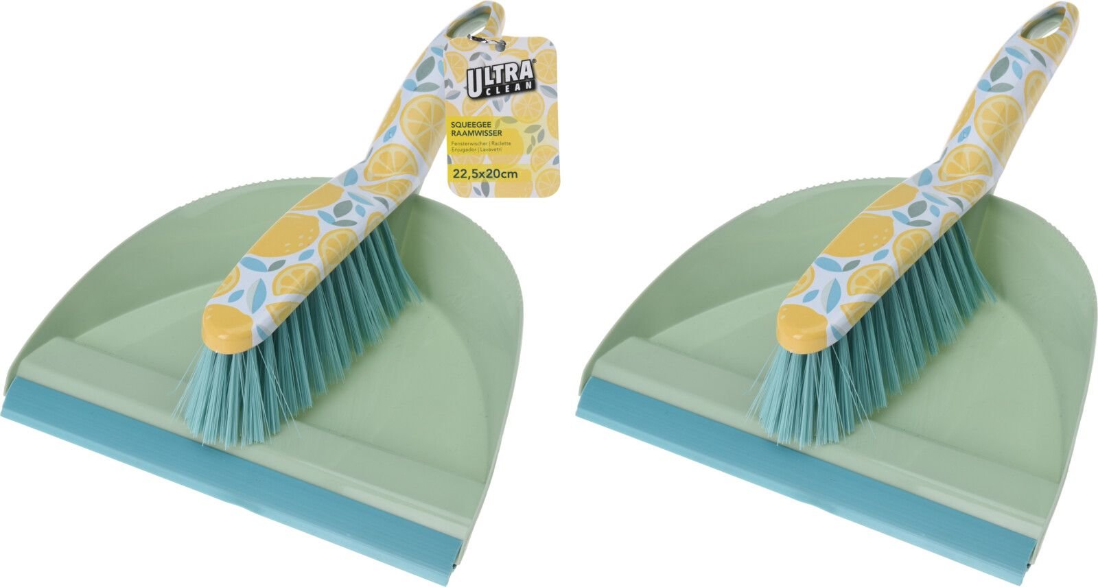 Plastový smetáček s lopatkou s lištou pro snadnější nametení nečistot na lopatku. Dekor citrónů. Materiál - plast, syntetické štětiny. Rozměry - 22,5x20 cm.