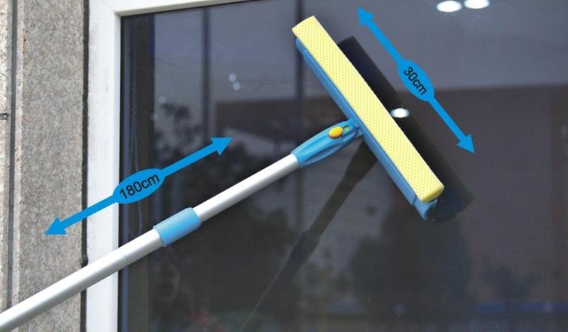 Délka stěrky 180 cm umožňuje pohodlné mytí oken z podlahy bez nutnosti žebříku. Praktické rozměry 30 x 8,7 cm pokryjí dostatečnou plochu a práci značně zrychlí. Navíc je stěrka dostupná v moderních barvách, které podtrhnou její vzhled i použití - modrá, bílá, stříbrná, žlutá a černá.