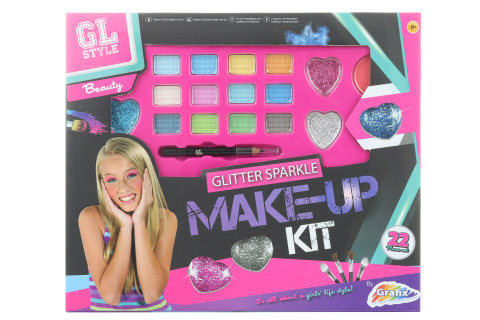 Make-up sada pro malé parádnice. Balení obsahuje 12 očních stínů, 2 tvářenky, 3 druhy třpytivých srdíček, 2 houbičky, 2 štětečky, tužku na oči a návod k použití. Rozměry balení cca 30 x 25 x 5,5 cm. Věk 8+