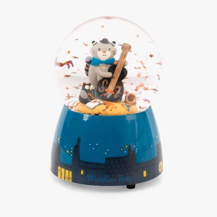 Roztomilý kocour hudebník, na kterého se snášejí drobné vločky bude krásnou dekorací v pokojíčku a oblíbenou hračkou dětí se zvukovým doprovodem.