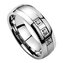 Dámský snubní prsten z chirurgické oceli zdobený matným pruhem ve středové linii a 3mi zirkony čiré barvy