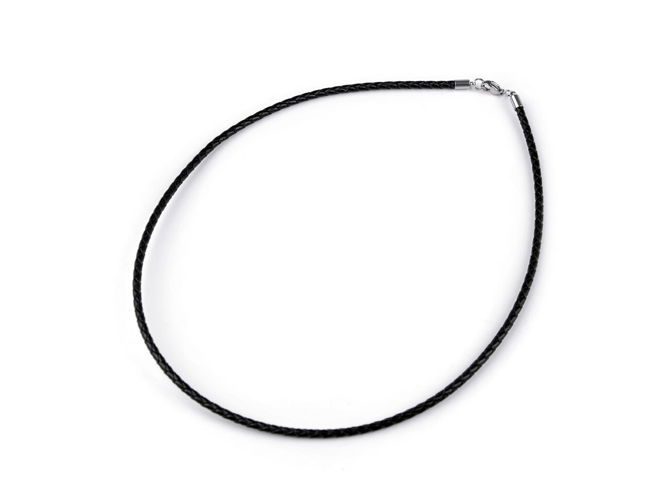 Kožená splétaná šňůrka s karabinkou z nerezové oceli délka 50 cm - 1 ks - černá