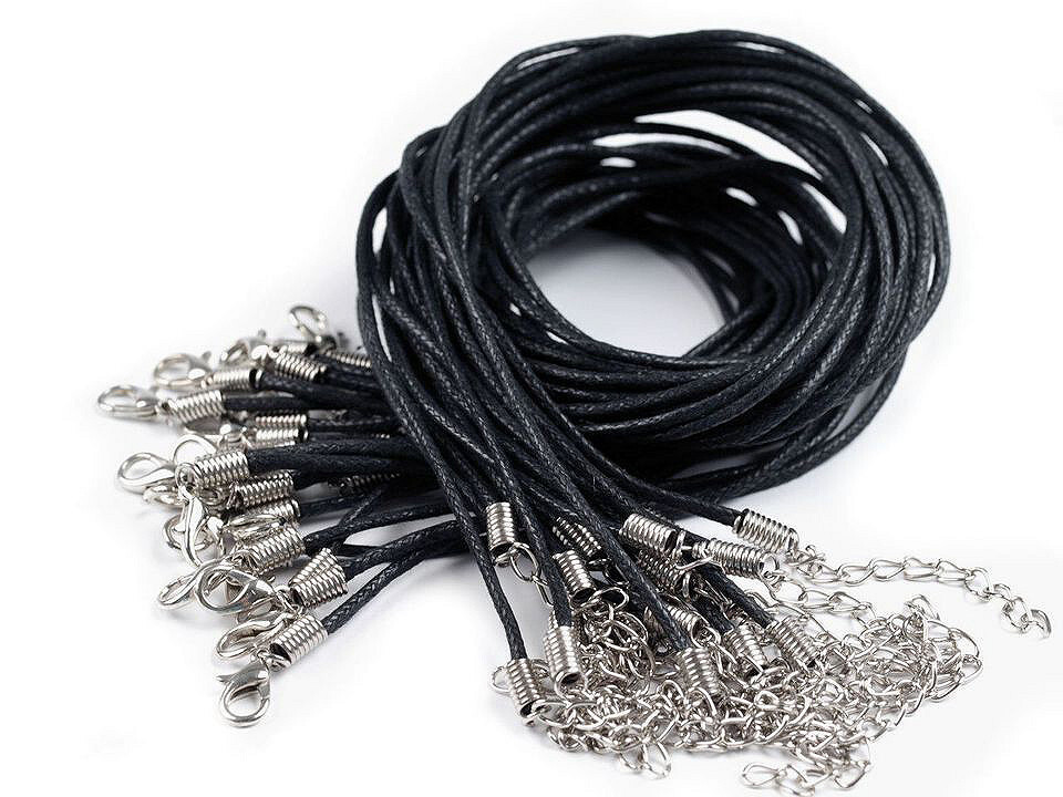Voskovaná šňůrka s karabinkou délka 45 cm - 100 ks - 8 černá