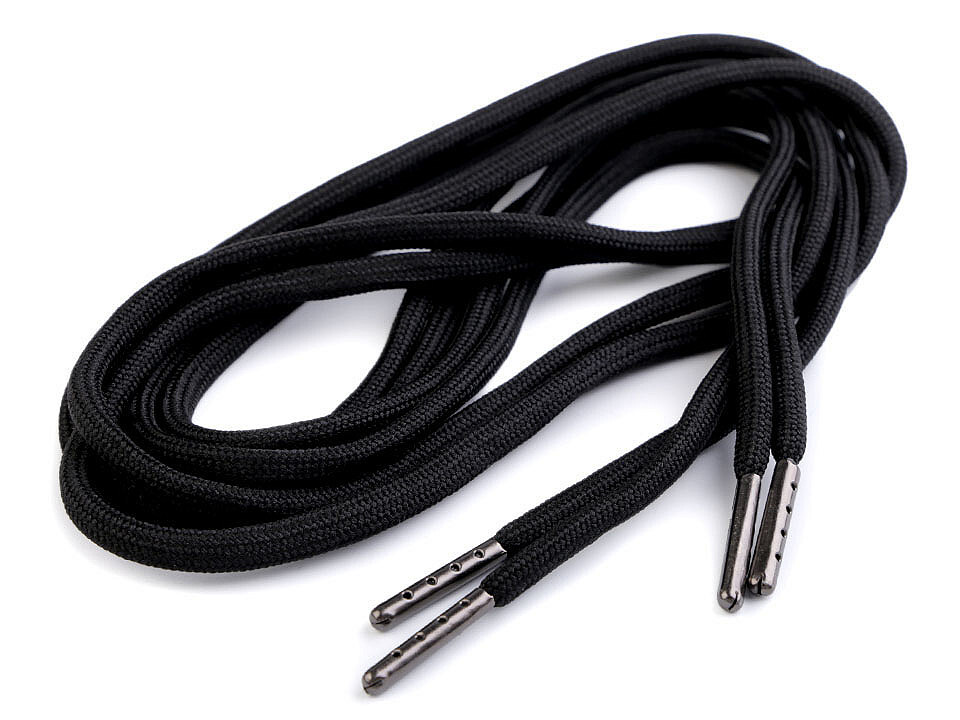 Oděvní šňůra s koncovkami do kapucí, délka 130 cm - 100 ks - 2 černá