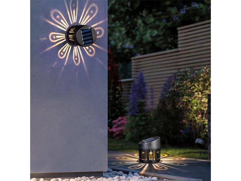 Dodejte svému domu a zahradě kouzlo s touto dekorativní solární lampou, která vypadá úžasně, ať už je namontována na zdi nebo na zemi! Speciální design lampy umožňuje světlu vrhat nádherné stíny na zeď nebo podlahu. Přes den se díky slunečnímu záření nabíjí vestavěná baterie a večer se světlo automaticky zapne. Díky solárnímu provozu nepotřebujete kabely, můžete jej umístit kdekoli, kde se dá přes den nabíjet, čímž šetříte energii, přičemž můžete vytvářet útulné, dekorativní fasády a zahrady.