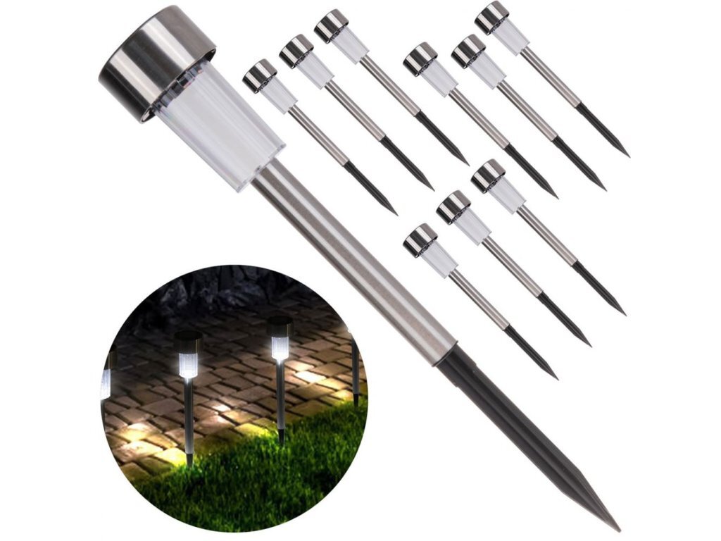 Stylové osvětlení zahrady sadou deseti solárních zahradních svítidel o rozměrech 30 x 4.5 cm. Tato svítidla jsou nejen esteticky příjemná, ale také praktická a ekologická. Díky solárnímu napájení šetří energii a přispívají k ochraně životního prostředí. Stupeň krytí IP44 zajišťuje, že svítidla jsou odolná vůči prachu a stříkající vodě, což je činí ideálními pro celoroční venkovní použití. Perfektní pro osvětlení chodníků, zahradních cest nebo dekorativních prvků ve vaší zahradě. Snadná instalace a údržba umožní vychutnat si krásné osvětlení bez starostí.