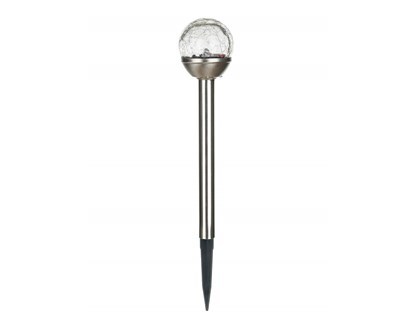 Tato nerezová solární lampa o výšce 33,5 cm je vybavena jedinečným skleněným dekoračním stínidlem ve tvaru koule s pavučinovým vzorem o průměru 6 cm, které vytváří jedinečnou atmosféru při rozsvícení. Využívá úspornou LED technologii s jedním bílým světelným zdrojem a díky solárnímu napájení ho stačí umístit na slunné místo, aby si během dne nasbírala energii pro večerní zářivý efekt.