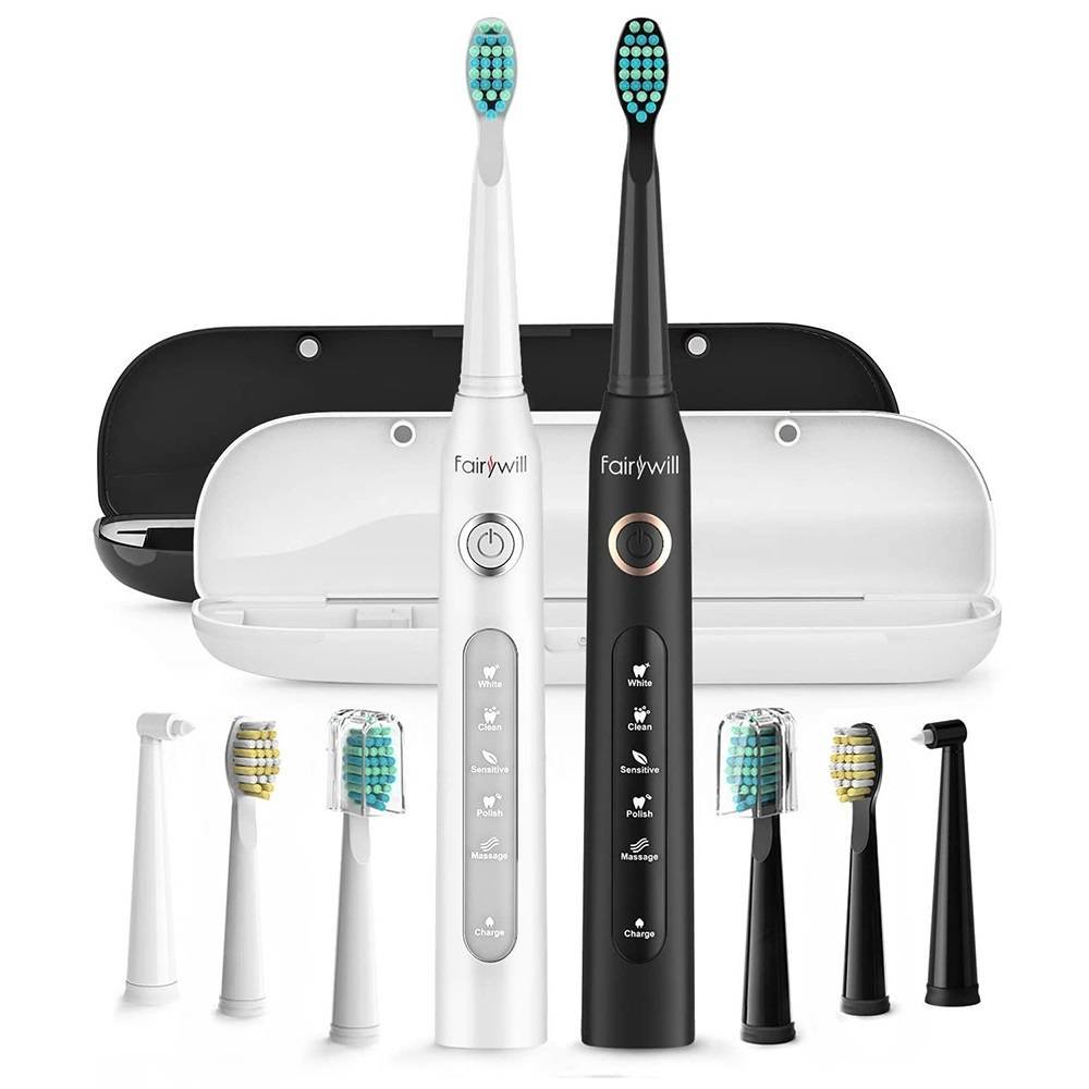 Sonické zubní kartáčky se sadou hlavic a pouzdrem FairyWill FW-507 (černobílý)