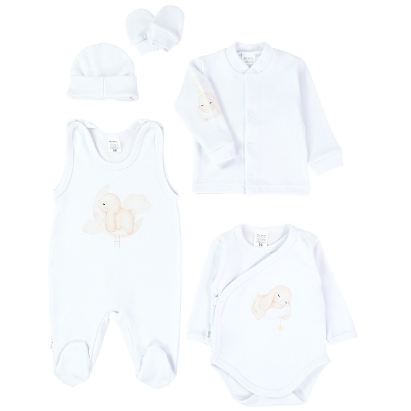 Soupravička do porodnice 5D bavlna, Zajíček, bílá; 50 (0-1m)