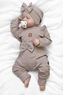 Žebrovaná rostoucí souprava 3D, Baby Girl - taupe; 56/62 (0-3m)