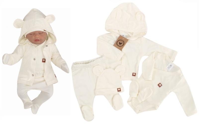 Sada do porodnice 5D, body, polodupačky, kabátek, čepička, rukavičky - ecru, vel. 62; 62 (2-3m)