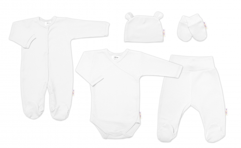 Praktická 5-dílná žebrovaná soupravička do porodnice Baby Nellys BOY, bílá, vel. 68; 68 (3-6m)