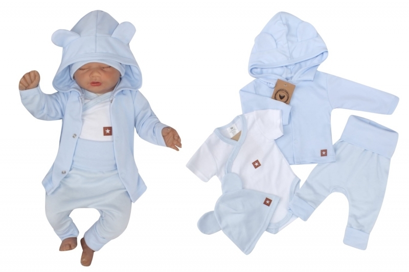 Novorozenecká sada 4D, body kr. rukáv, tepláčky, kabátek a čepička Z&Z, modrá, vel. 56; 56 (1-2m)