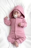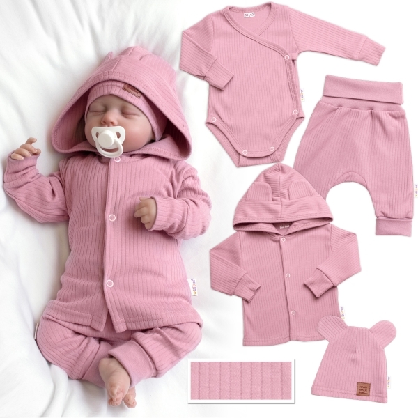 Žebrovaná rostoucí souprava 4D, zavin. body, kalhoty, kabátek a čepička, pudrová,vel.68/74; 68/74 (6-9m)