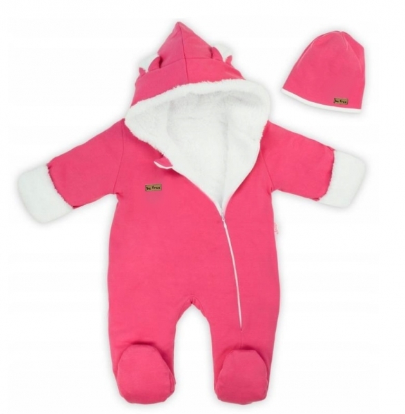 Oteplený kojenecký overal/kombinéza s kapucí + čepička, Be Free, růžová/bílá; 62 (2-3m)
