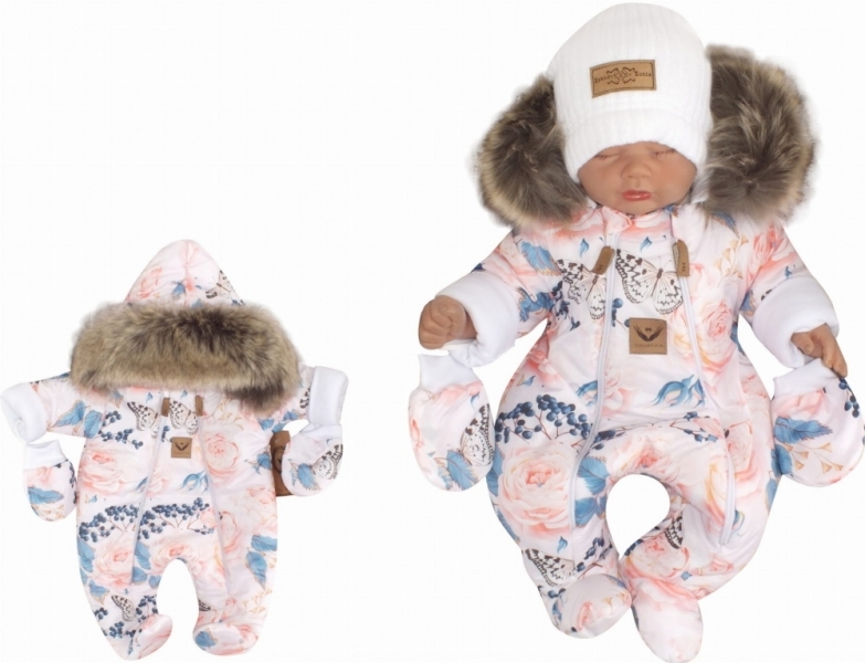 Zateplená zimní kombinéza s kapucí + rukavičky.